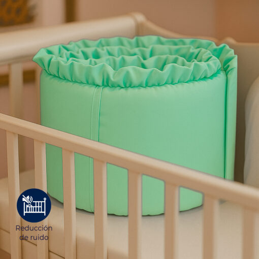 Cuenta con prácticos lazos para ajustarlo fácilmente a las barandas de la cuna, asegurando una sujeción firme y segura.