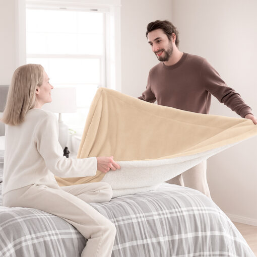 El color Beige, elegante y neutro, aporta serenidad y combina fácilmente con cualquier decoración, tanto en dormitorios como en salas. Su diseño es ideal para usar sobre la cama, el sofá o como cobija auxiliar.