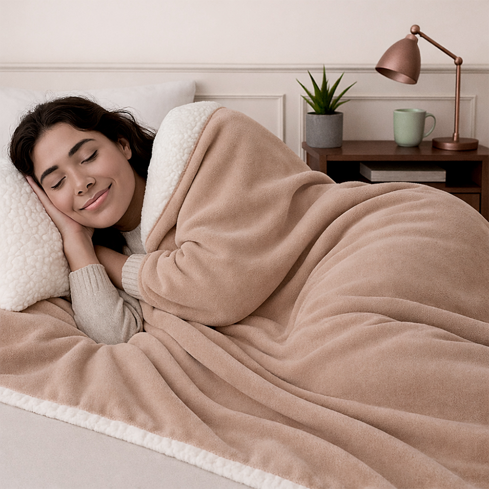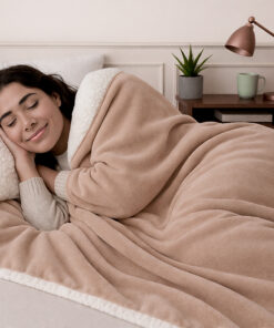 La Cobija Ovejera Camel combina calidez superior con una estética sofisticada y acogedora. Su textura tipo ovejera brinda una sensación envolvente y suave al contacto, perfecta para descansar con máximo confort durante los días fríos.