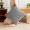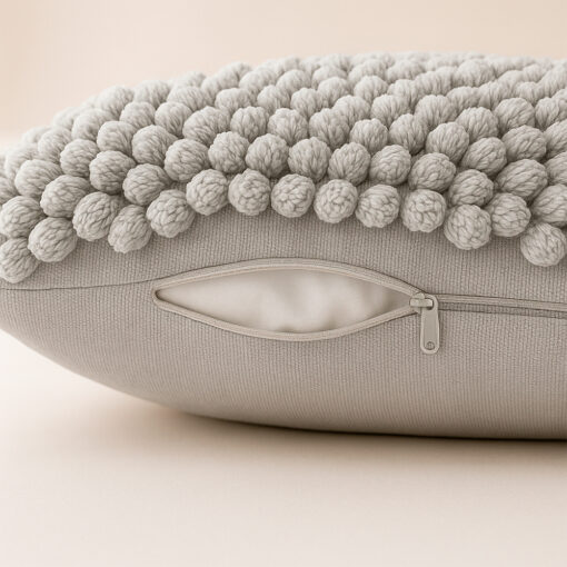 El frente del cojín destaca por su relieve mullido en patrón uniforme, mientras que el reverso liso equilibra el diseño, permitiendo una fácil combinación con otros cojines, mantas o ropa de cama. Su tono plata es sofisticado, neutro y versátil, ideal para interiores modernos, contemporáneos o escandinavos.