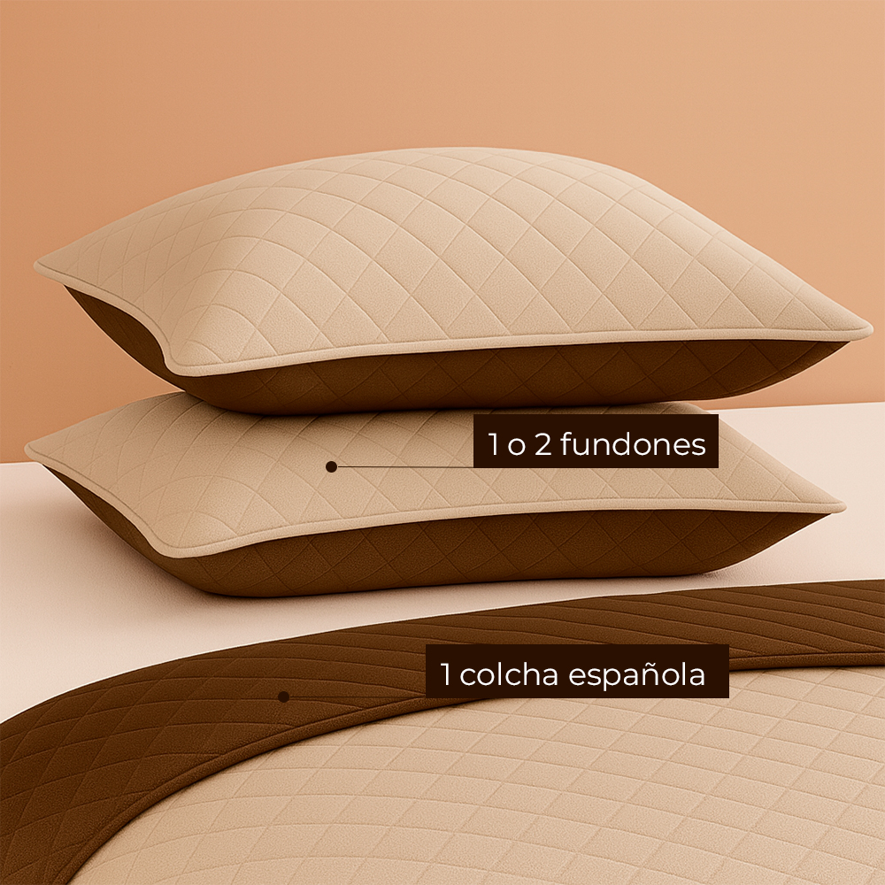 La Colcha Española Microembosada Café / Beige es la elección perfecta para quienes buscan elegancia, confort y versatilidad en su dormitorio. Su diseño microembosado aporta una textura sutil y sofisticada, elevando la apariencia de la cama sin recargar el espacio.
