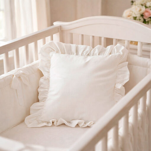 Combo Dulces Sueños Pequeñín Blanco – Set Completo de Cuna con Bumper + Juego de Sábanas + Almohada + Cojines + Protector Antifluido