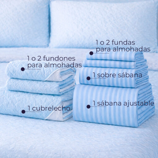 Combo Fresh Infantil Celeste/Blanco – Juego de Sábanas Azul Cielo Embosadas + Cubrelecho Infantil Celeste/Blanco