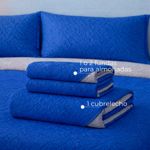 Dale un toque moderno, vibrante y sofisticado al cuarto infantil con este cubrelecho doble faz en tonos azul rey y gris. Su diseño acolchado resalta una textura elegante y suave que transforma el espacio en un ambiente cómodo, organizado y con carácter.