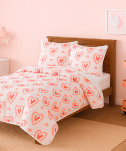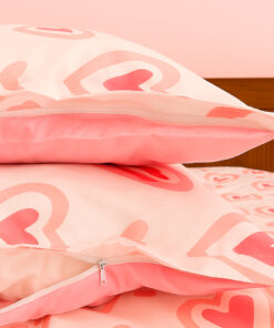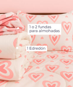 Con su diseño tierno de corazones en tonos rosados y fucsia, crea un ambiente cálido, acogedor y lleno de estilo.