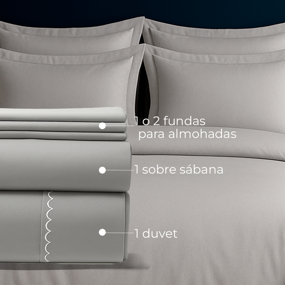 El Juego de Duvet de 300 Hilos Gris Claro es la elección ideal para quienes buscan una cama luminosa, moderna y atemporal. Su tono gris claro aporta equilibrio y sofisticación, adaptándose fácilmente a diferentes estilos de decoración.
