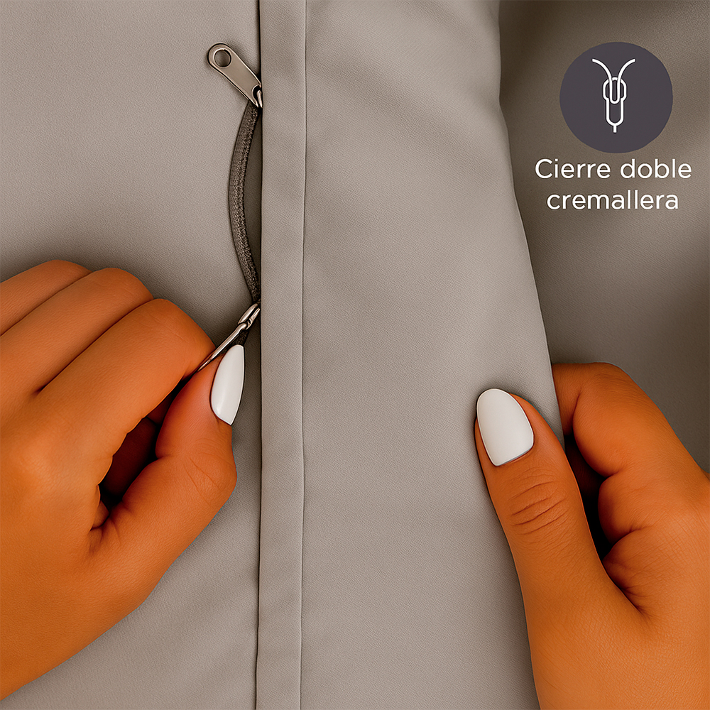 La funda de duvet incorpora cierre doble cremallera, lo que facilita el armado y asegura que el relleno permanezca fijo, logrando una cama siempre ordenada y elegante.