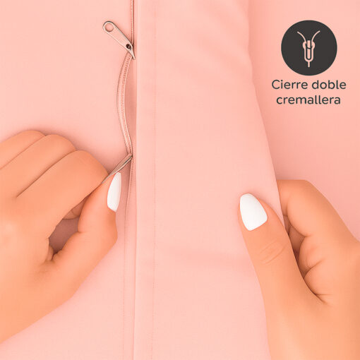 La funda de duvet cuenta con cierre doble cremallera, lo que facilita el armado y mantiene el relleno firme, logrando una cama siempre ordenada, prolija y visualmente armoniosa.