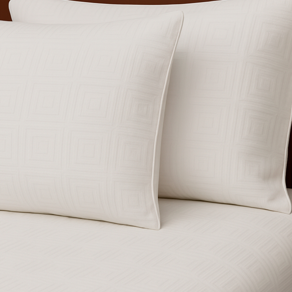 Renueva tu dormitorio con la elegancia atemporal del Juego de Duvet Jacquard Blanco Cuadros. Su diseño en relieve de cuadros geométricos aporta un estilo minimalista y sofisticado, ideal para quienes buscan un ambiente moderno y luminoso en su habitación.