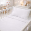 1 valoración en Juego de sábanas blanco con boleros para cuna