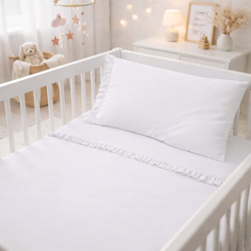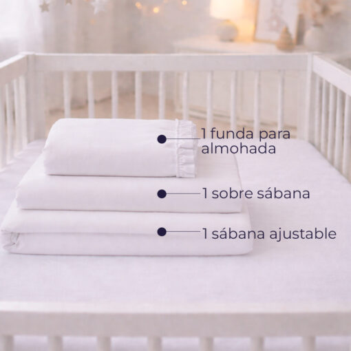 Juego de sábanas blanco con boleros para cuna