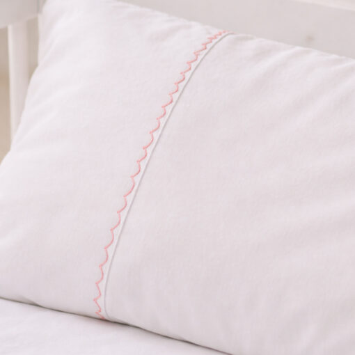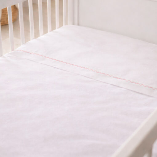 Juego de sábanas blanco con bordado rosado para cuna
