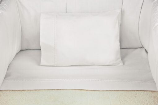 1 valoración en Juego de sábanas blanco con bordado rosado para cuna