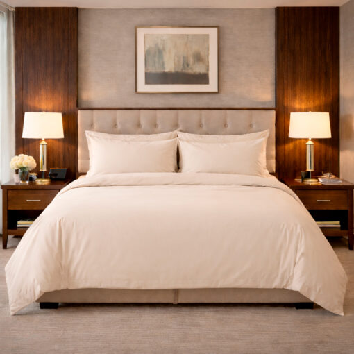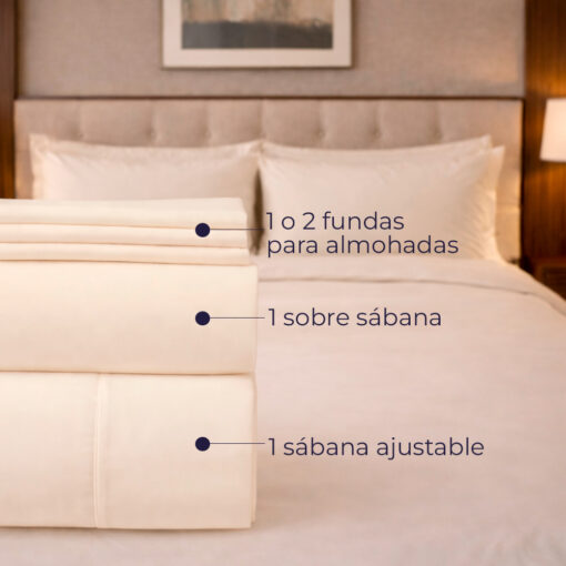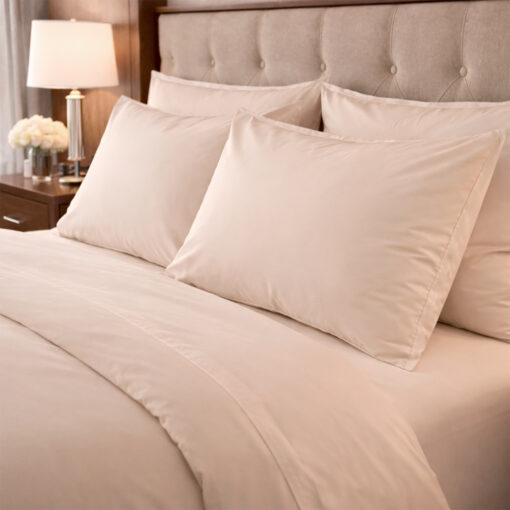 El Juego de Sábanas Hoteleras 144 Hilos en color Beige está diseñado para ofrecer resistencia, frescura y durabilidad en ambientes de alto tráfico como hoteles, hostales y alojamientos turísticos.