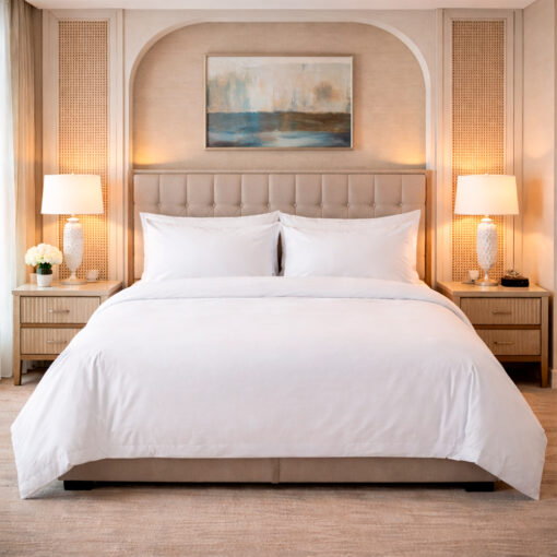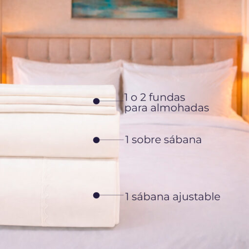 El Juego de Sábanas Hoteleras 180 Hilos en color Blanco está diseñado para ofrecer resistencia, frescura y durabilidad en ambientes de alto tráfico como hoteles, hostales y alojamientos turísticos.