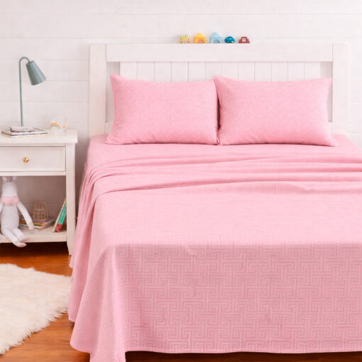 Su tono rosado transmite calidez y armonía, ideal para crear habitaciones infantiles modernas, dulces y acogedoras. Su tejido permite una sensación suave al contacto con la piel, ayudando a mejorar la calidad del descanso.