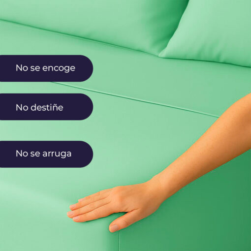 Es un juego el cual tiene una textura suave a la hora de dormir, lo que le permite tener un mejor sueño y que su despertar sea más reconfortante. Este está hecho de una microfibra de poliéster de alta calidad esto hace que no destiña, no genere motas y sea fácil de lavar ademas de que al momento del secado salga casi pre-planchado.