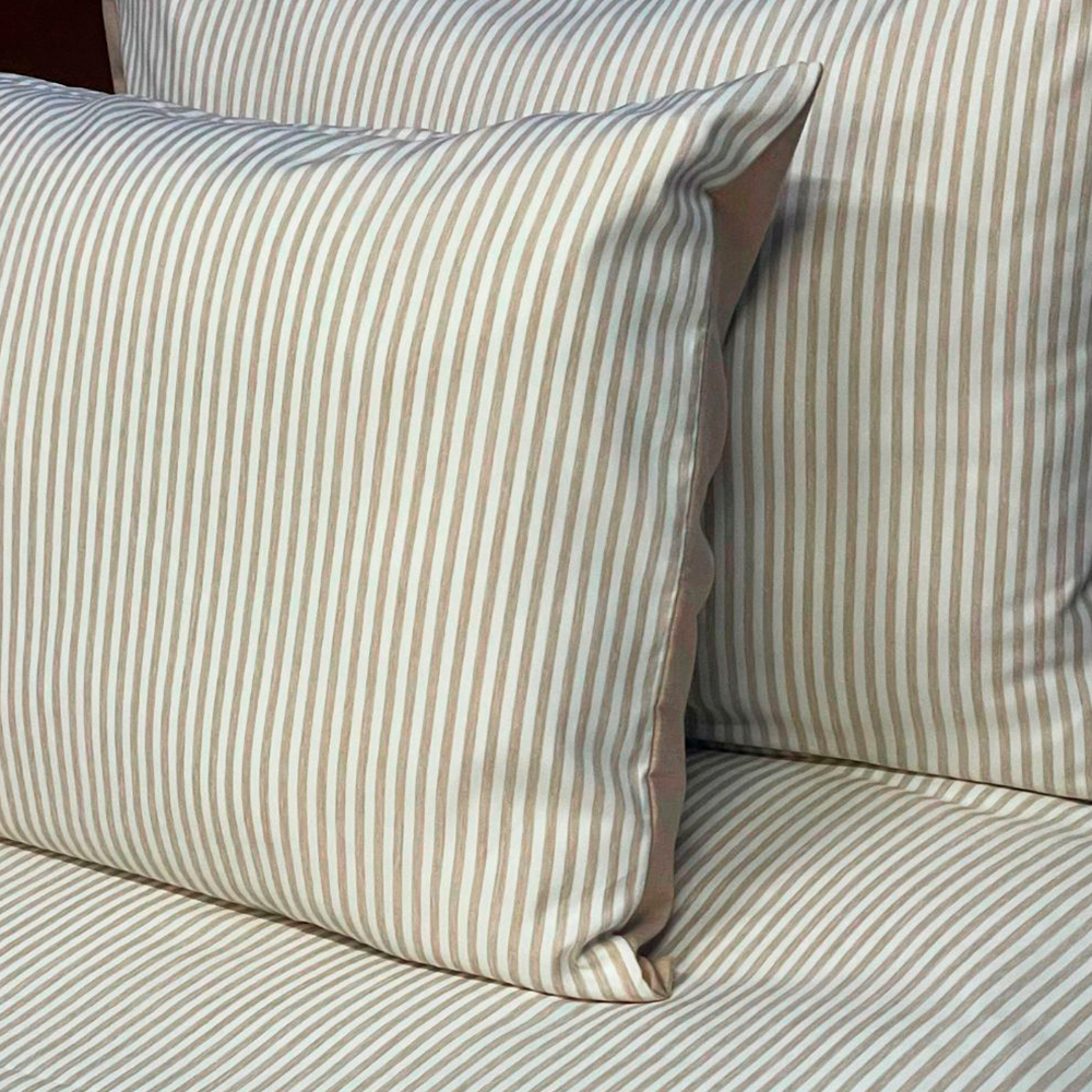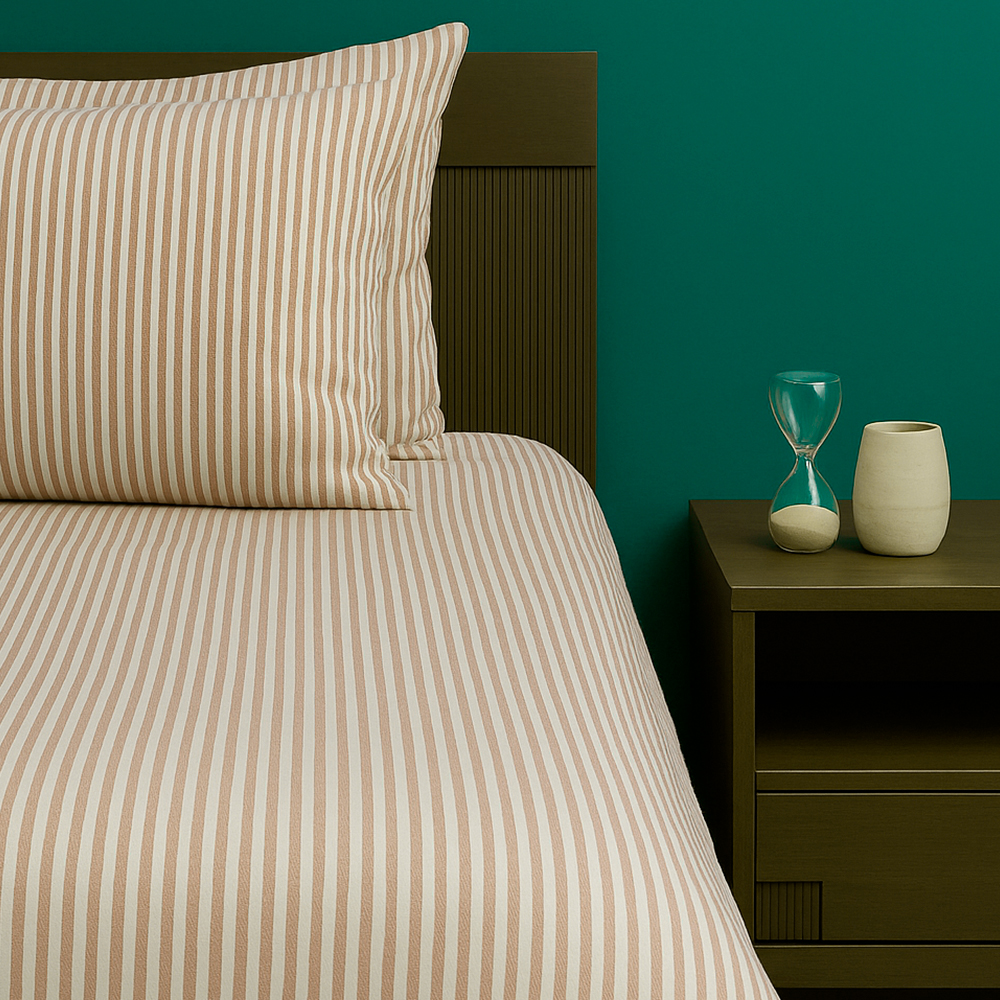 El Juego de Duvet Catiónico Café Raya Delgada combina elegancia y confort en un diseño atemporal que transforma cualquier habitación. Su patrón de finas rayas verticales en tonos café y beige aporta un aire cálido, natural y sofisticado, ideal para quienes buscan un estilo clásico y acogedor.