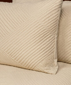 Juego de duvet jacquard en tono camel con diseño de rayas en relieve. Incluye funda duvet, sábana ajustable y fundas de almohada. Elegancia premium y suavidad garantizada.