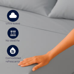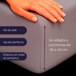 La sábana ajustable cuenta con elástico completo en todo el contorno, lo que asegura un ajuste firme que no se mueve, adaptándose de manera ideal a colchones de 35 a 40 cm de altura.