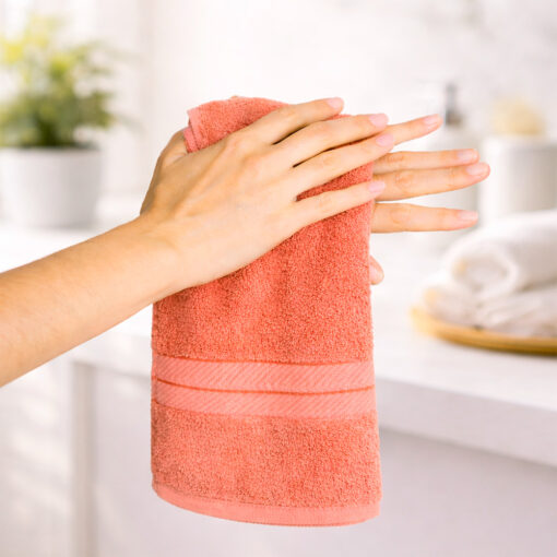 Su tono coral aporta calidez y estilo al baño, permitiendo crear espacios acogedores y modernos. Gracias a su gramaje de 400 gramos, proporciona resistencia, durabilidad y una absorción eficiente para el uso diario.