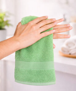 Su tono verde manzana aporta vitalidad y modernidad al baño, creando espacios frescos y luminosos. Gracias a su gramaje de 400 gramos, brinda resistencia, durabilidad y un secado eficiente.