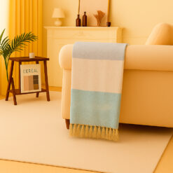 La Manta Decorativa Tricolor con Flecos en tonos Celeste, Marfil y Plata es la pieza perfecta para transformar cualquier espacio en un ambiente fresco, elegante y lleno de armonía visual. Su combinación de colores suaves aporta luminosidad y serenidad, ideal para dormitorios, salas modernas, espacios nórdicos o ambientes aspiracionales.