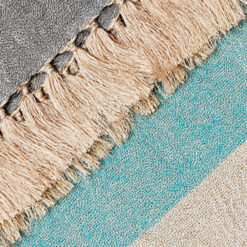 Manta Decorativa Tricolor con Flecos – Celeste, Marfil y Plata