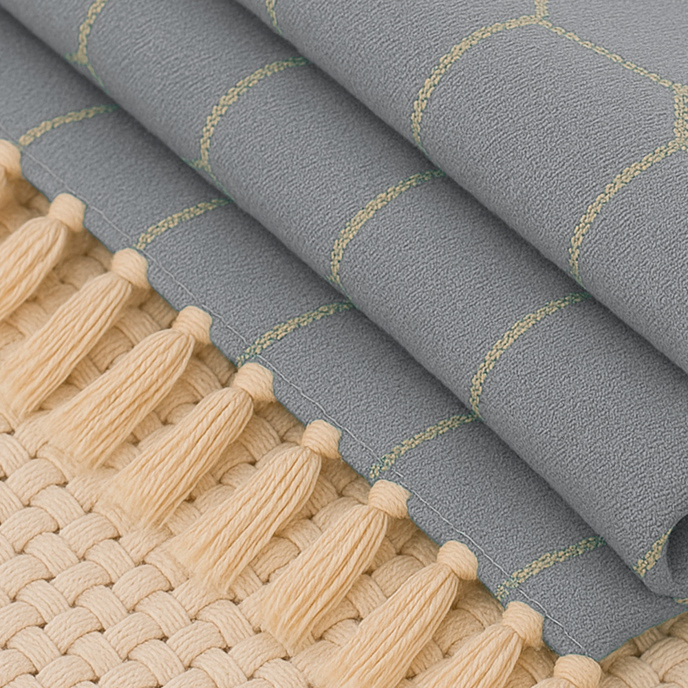 Renueva por completo la estética de tu habitación con nuestro Pie de Cama Decorativo Rombo Azul Grisáceo con Flecos de Casa LILÉ, una pieza elegante, moderna y perfectamente diseñada para añadir textura, estilo y calidez a cualquier espacio. Su tono azul grisáceo ofrece una apariencia sofisticada y versátil, ideal para combinar con decoraciones claras, neutras o de estilo nórdico.