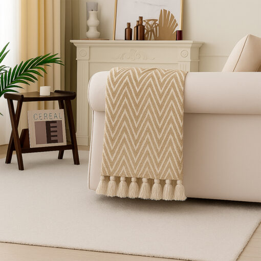 El tejido premium ofrece una textura suave y cómoda, ideal tanto para decorar como para usarlo como manta ligera. Los flecos artesanales añaden un detalle sofisticado y acogedor que le da profundidad visual y un toque cálido al ambiente.