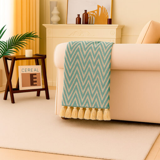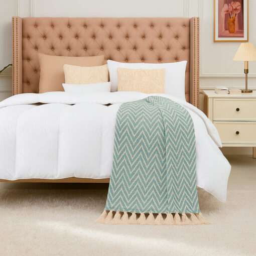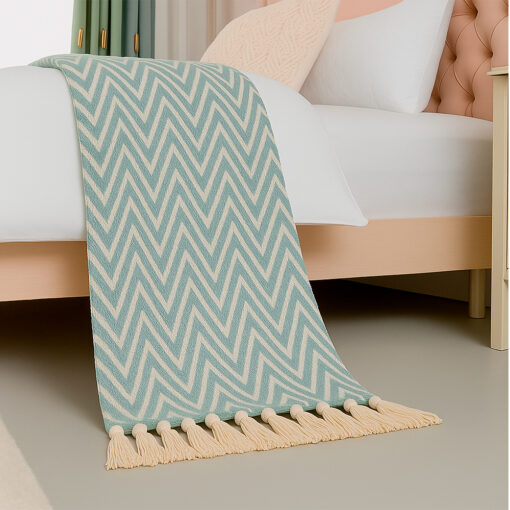 El tejido premium con diseño zig zag crea una textura visual que destaca sin saturar, logrando un balance ideal entre elegancia y modernidad. Sus flecos artesanales en tono crema añaden un toque cálido y decorativo, convirtiéndolo en una pieza perfecta para resaltar tu cama, sofá o sillón.