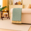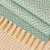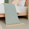 1 Pie de cama decorativo color menta con diseño zig zag y flecos en tono crema.