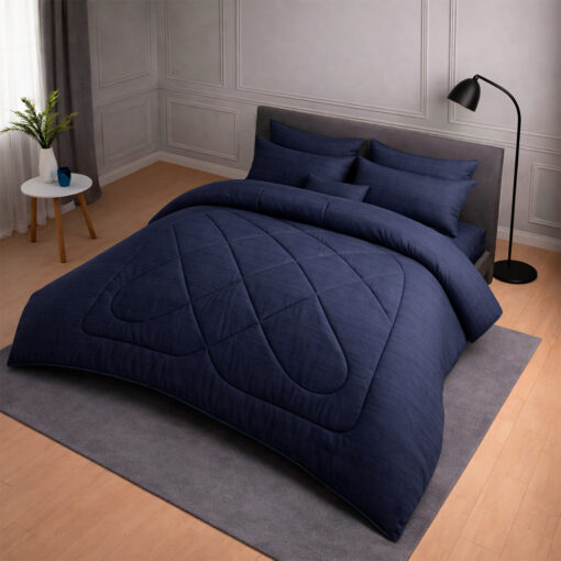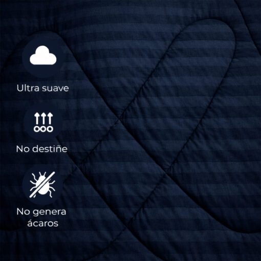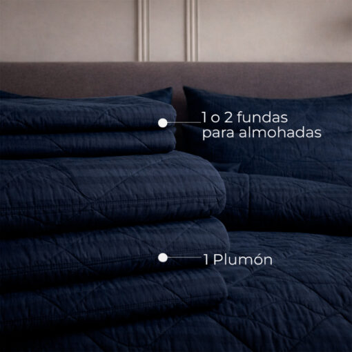 Plumón Azul Oscuro Embozado Premium + Set Fundas