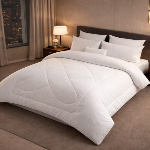 Plumón hotelero 300 hilos en polialgodón. Ultra suave, acolchado y térmico. No destiñe ni genera ácaros. Brinda calidez sin exceso de peso. Ideal para hoteles modernos que buscan elegancia, resistencia y larga durabilidad.