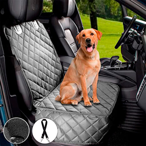 Viaja tranquilo con tu mascota usando este protector premium para silla delantera de carro. Impermeable, cómodo y seguro, protege de rasguños, manchas y pelos.