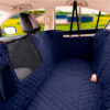 Viaja tranquilo con tu mascota usando este protector premium para silla trasera de carro. Impermeable, cómodo y seguro, protege de rasguños, manchas y pelos, con aberturas para cinturones
