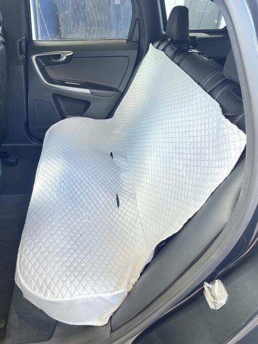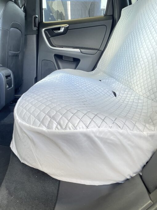 Protector de silla trasero de carro para mascota, es ideal para proteger la cojinería del carro de rasguños, manchas y pelos. Este se amolda y adapta a todo tipo de automóvil o camioneta. Además cuenta con 2 aberturas para cinturones de seguridad.