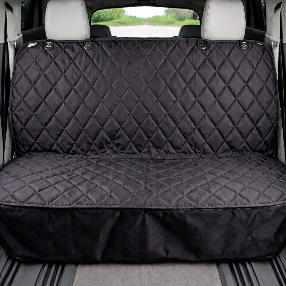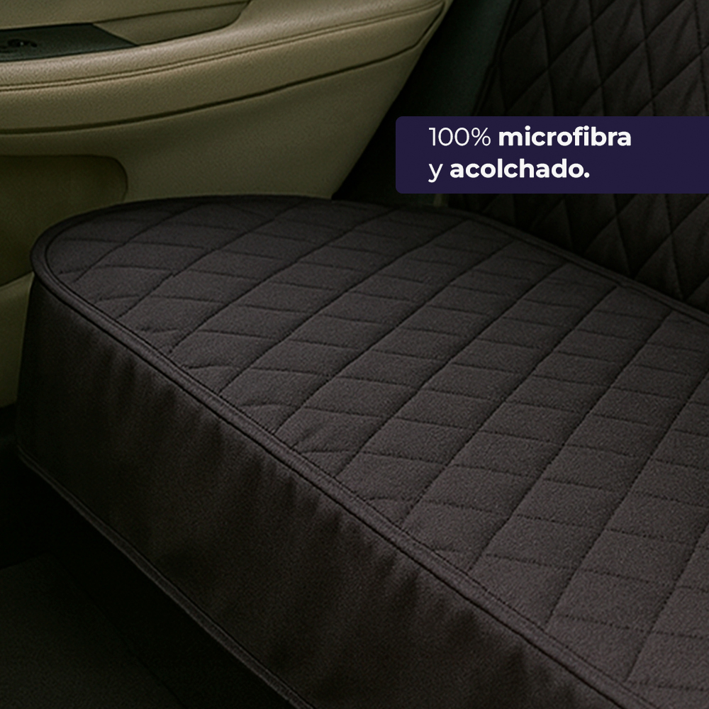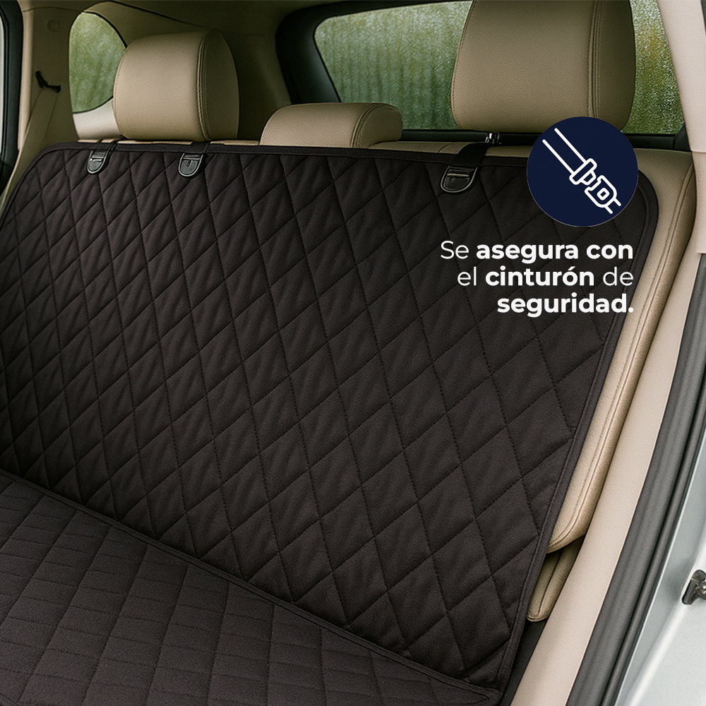 Protege la silla trasera de tu carro con este protector para mascotas. Evita rasguños, manchas y pelos, se adapta a todo vehículo e incluye aberturas para cinturones de seguridad.
