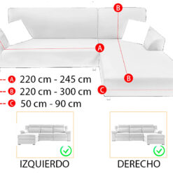 Incluye:1 funda ajustable para sofá tipo L y 2 fundas para cojines de 40cm x 40cm.