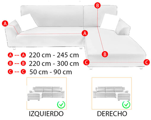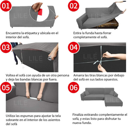 Incluye: una (1) funda ajustable para sofá tipo L y dos (2) fundas para cojines de 40cm x 40cm.