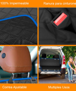 Contiene: un (1) protector para silla trasera de carro, un (1) cinturón de seguridad para perros.